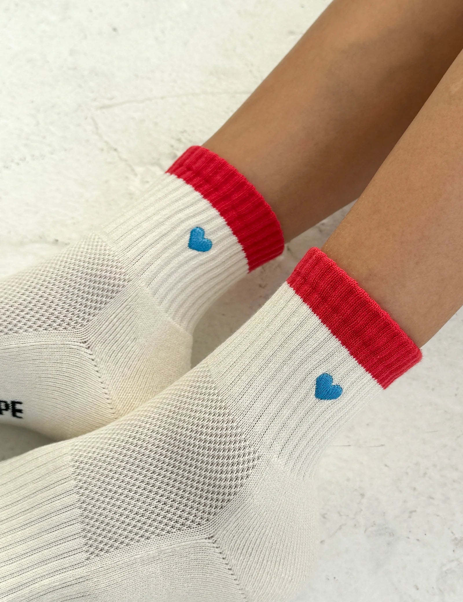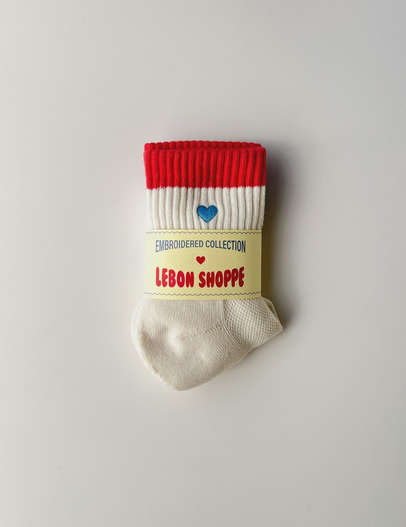 LeBon Embroidered Colour Block Girlfriend Socks - Blue, Red & Heart