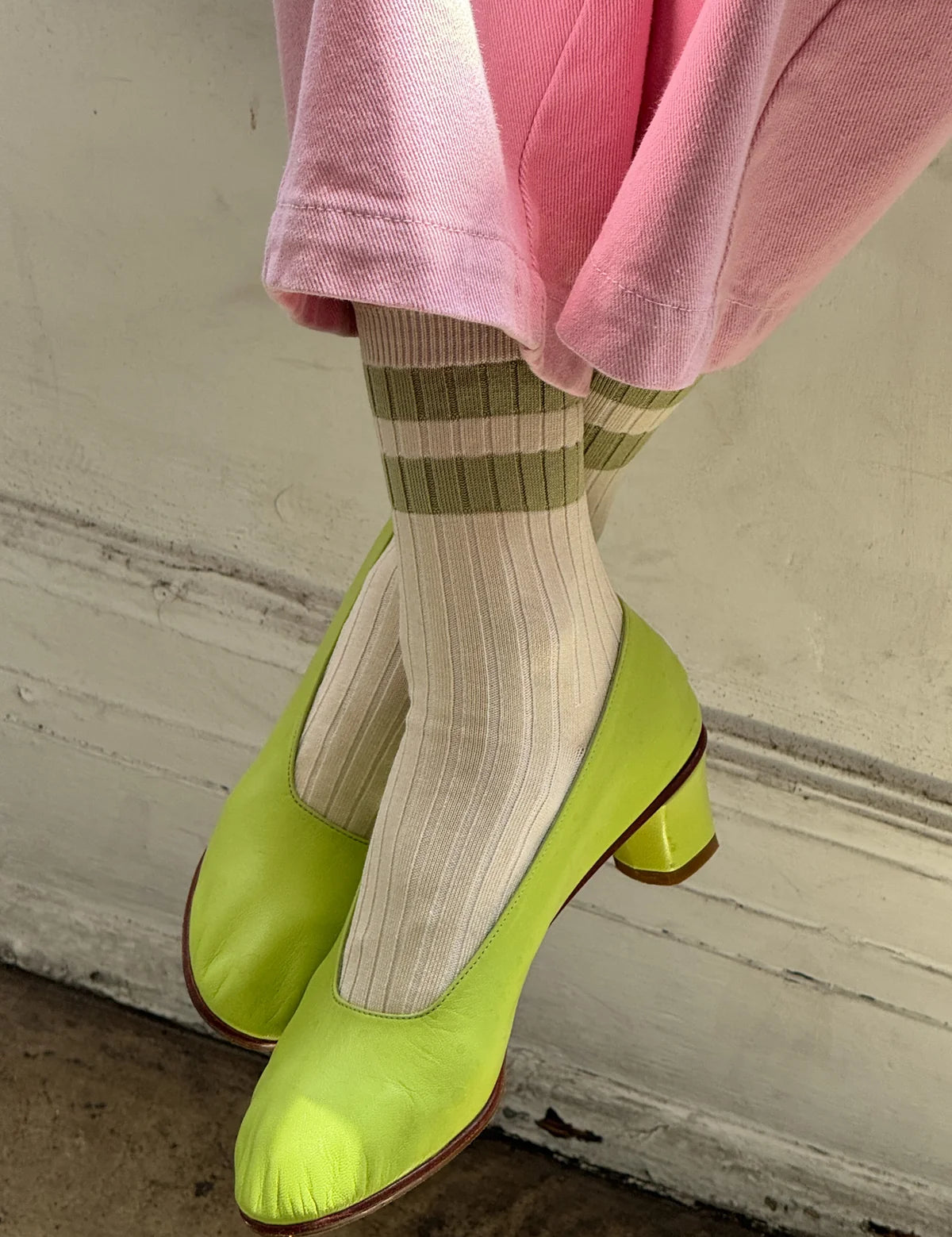 LeBon Her Varsity Socks - Guacamole