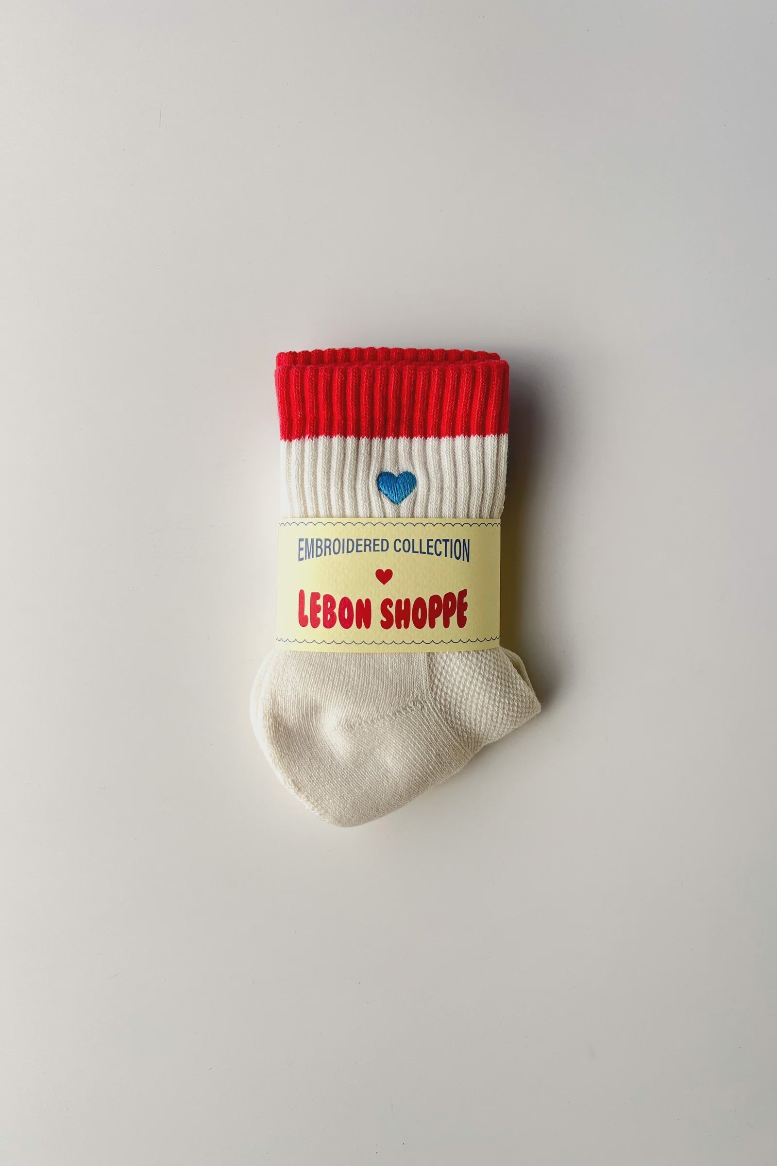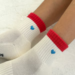 LeBon Embroidered Colour Block Girlfriend Socks - Blue, Red & Heart