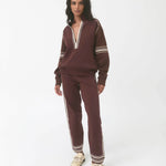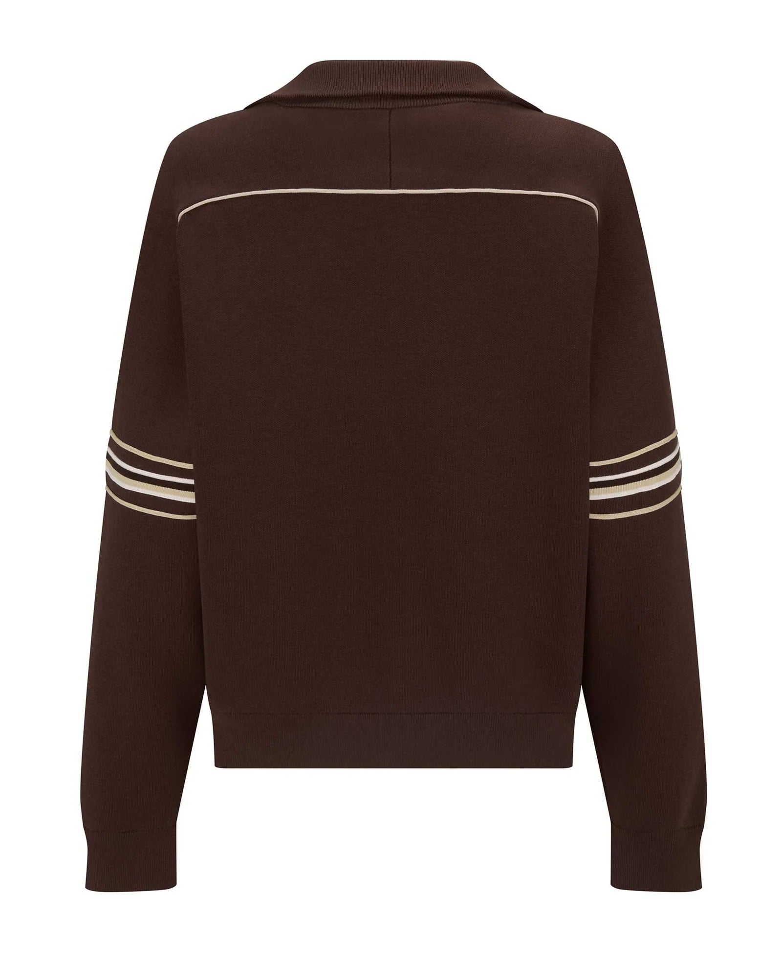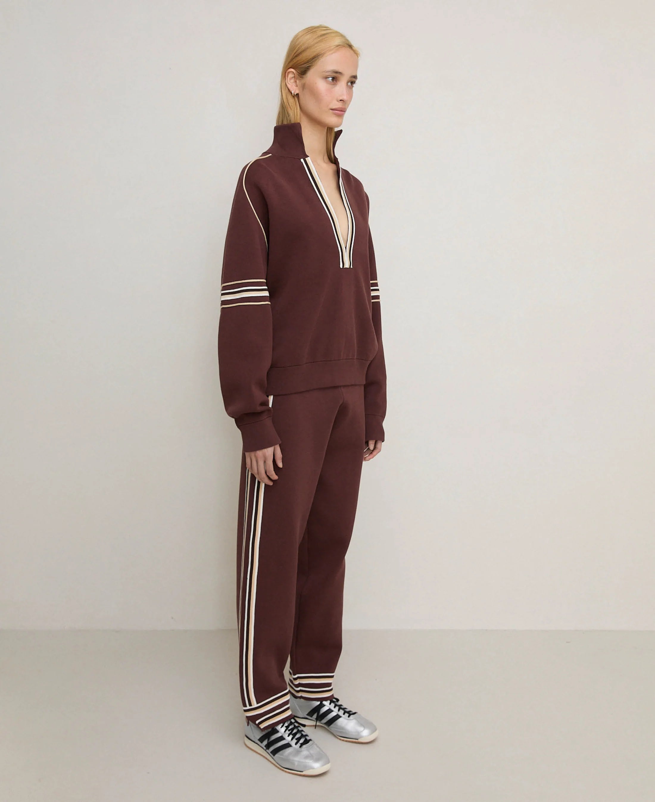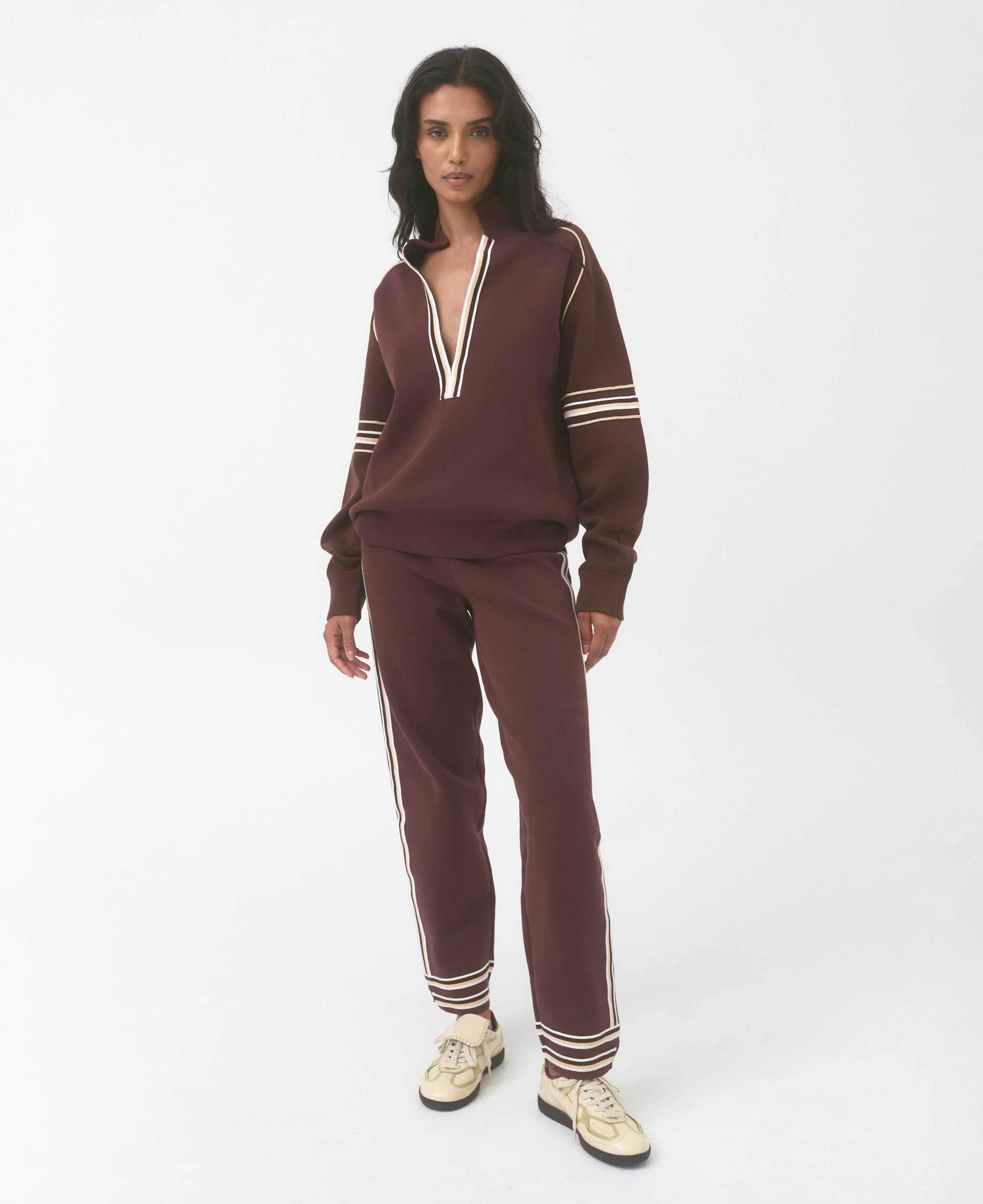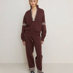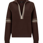 • Relaxed, deep V-neck long sleeve jersey with custom stripe knit tape along neckline and on sleeves