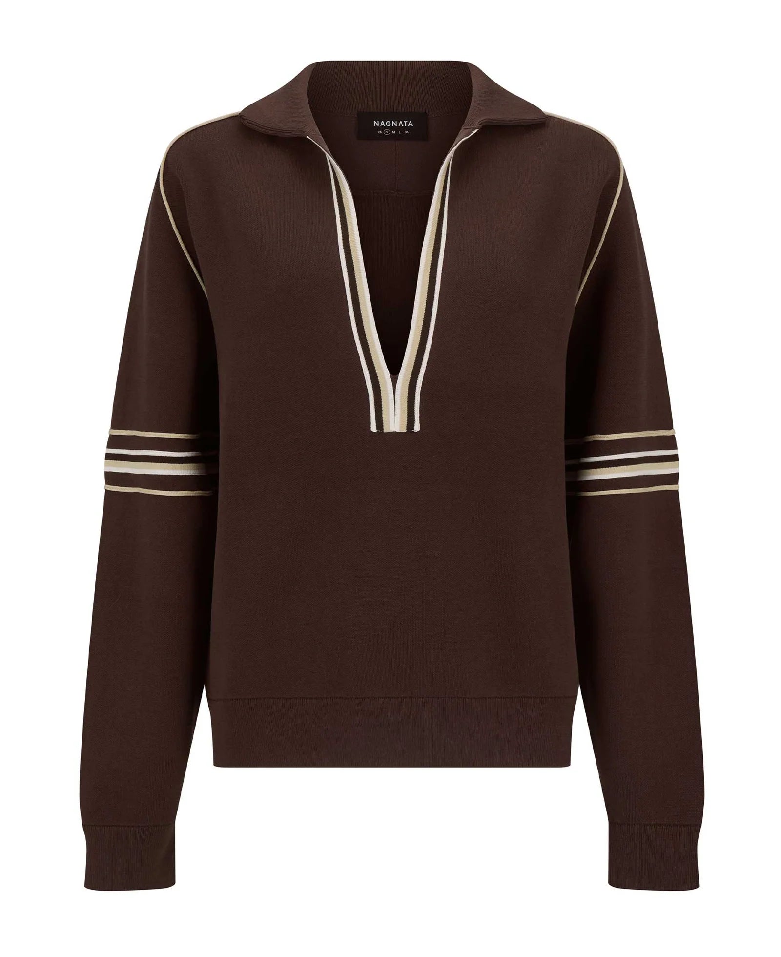 The Motley Jersey is a fashion-take on a sports jersey, a staple of our Nagnata SAMA uniform. Knitted from our signature organic cotton tech-knit fabrication, it features a custom knitted tape and deep V neckline, styled to suit all genders.