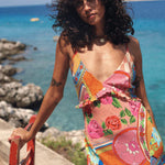 The Aphrodite Bias Maxi Dress in Rose is a bold statement of romantic freedom. Featuring a striking Aphrodite print and a flattering bias cut, this dress sculpts the silhouette with adjustable straps, a delicate frill at the waist, and flared skirt panels. Designed to celebrate love’s creative spirit, it moves effortlessly with you, capturing a daring elegance that feels both timeless and vividly alive.