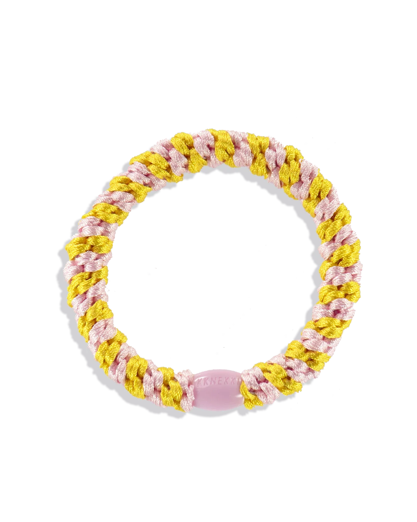 KKNEKKI Hair Tie - Yellow - Pink Stripe