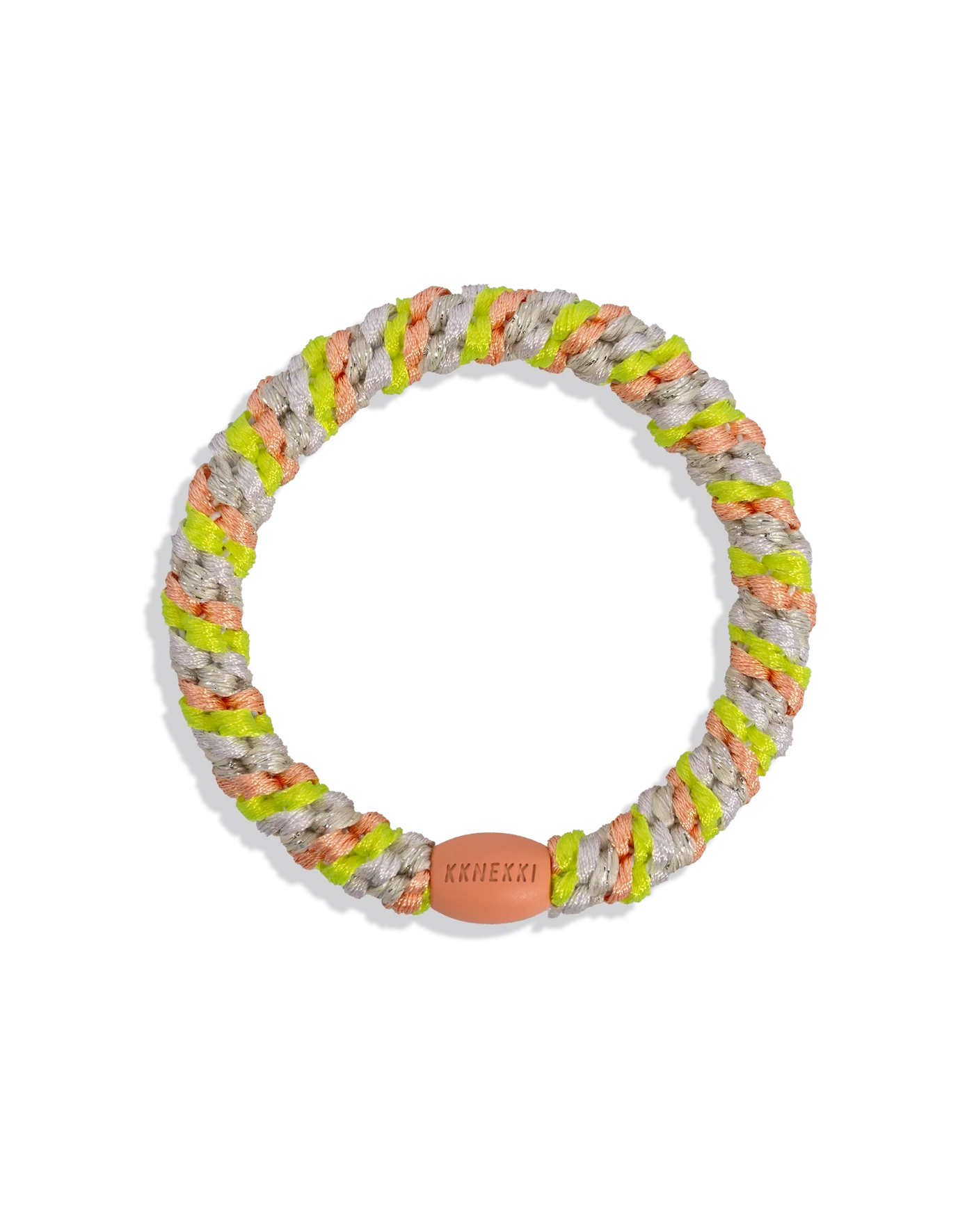 KKNEKKI Hair Tie - Stripe Coral Neon Yellow