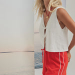 Relaxed-fit summer shorts with soft drape and easy movement. Features subtle side panel detailing and an adjustable drawcord waist.