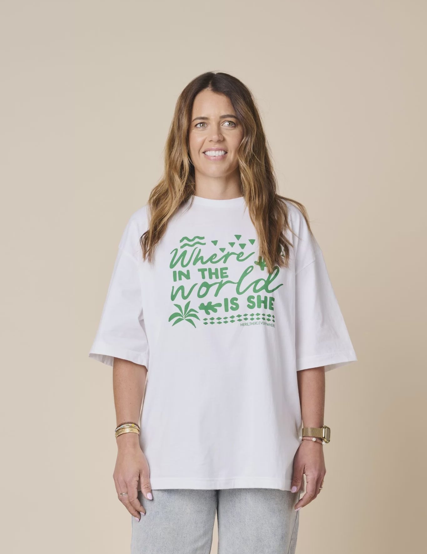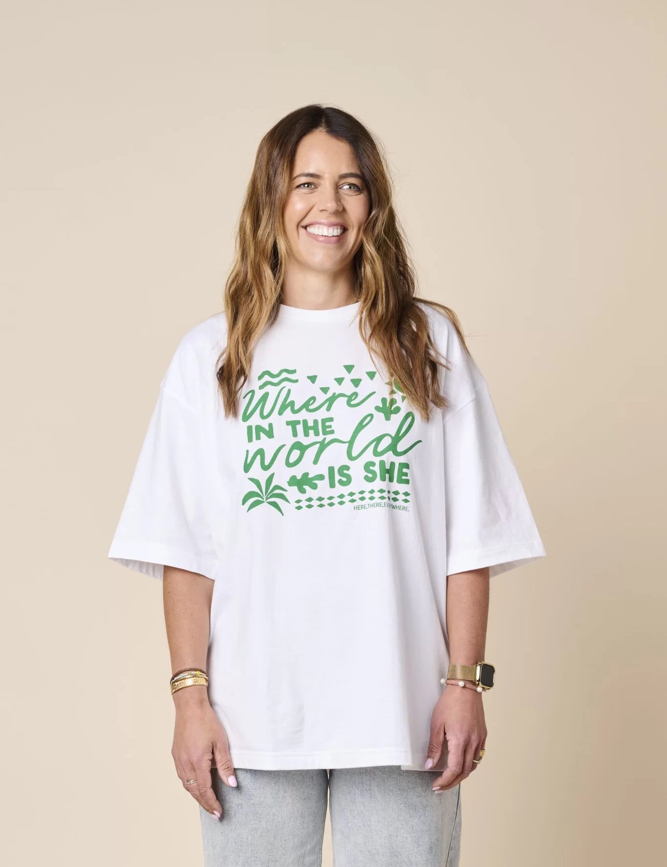 Here, There & Everywhere Where in the World is She Tee - White