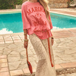 The Marina Piccola Oversized Biker Tee in Cosmos Pink makes a bold statement with its striking custom front print. Crafted from 100% organic cotton, this tee combines edgy biker attitude with effortless comfort. Its generous oversized fit adds a rebellious flair, perfect for those who dare to stand out and own their style.