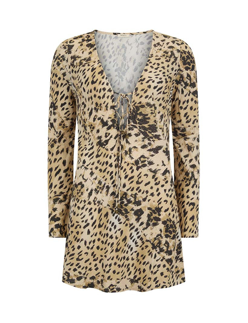 Spell Snow Leopard Asymmetric Blouse - Animal
